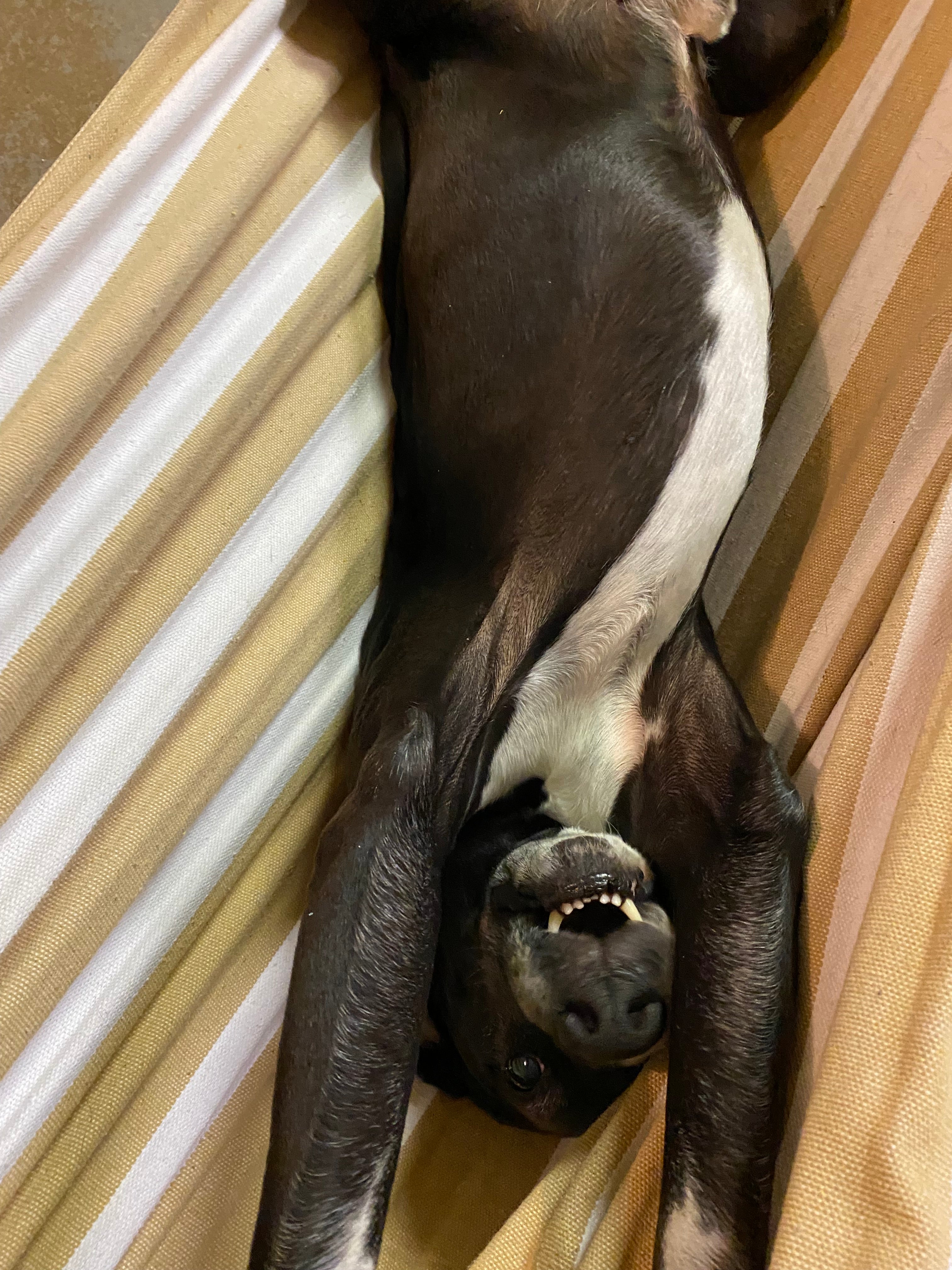 I'm one of Mama's pups. I was born after my mom was rescued, and I don't know a bad day. Every day is a good day to be a goofy dude!